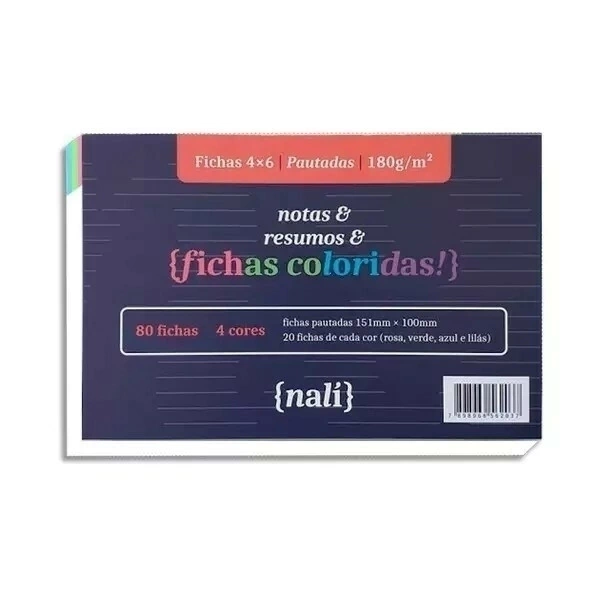 Feitas em papel offset 180g/m², as fichas da Nalí são versáteis e coloridas. Seja para fichamentos de estudos, esquemas ou resumos, sua bordinha colorida é perfeita para ajudar na organização.