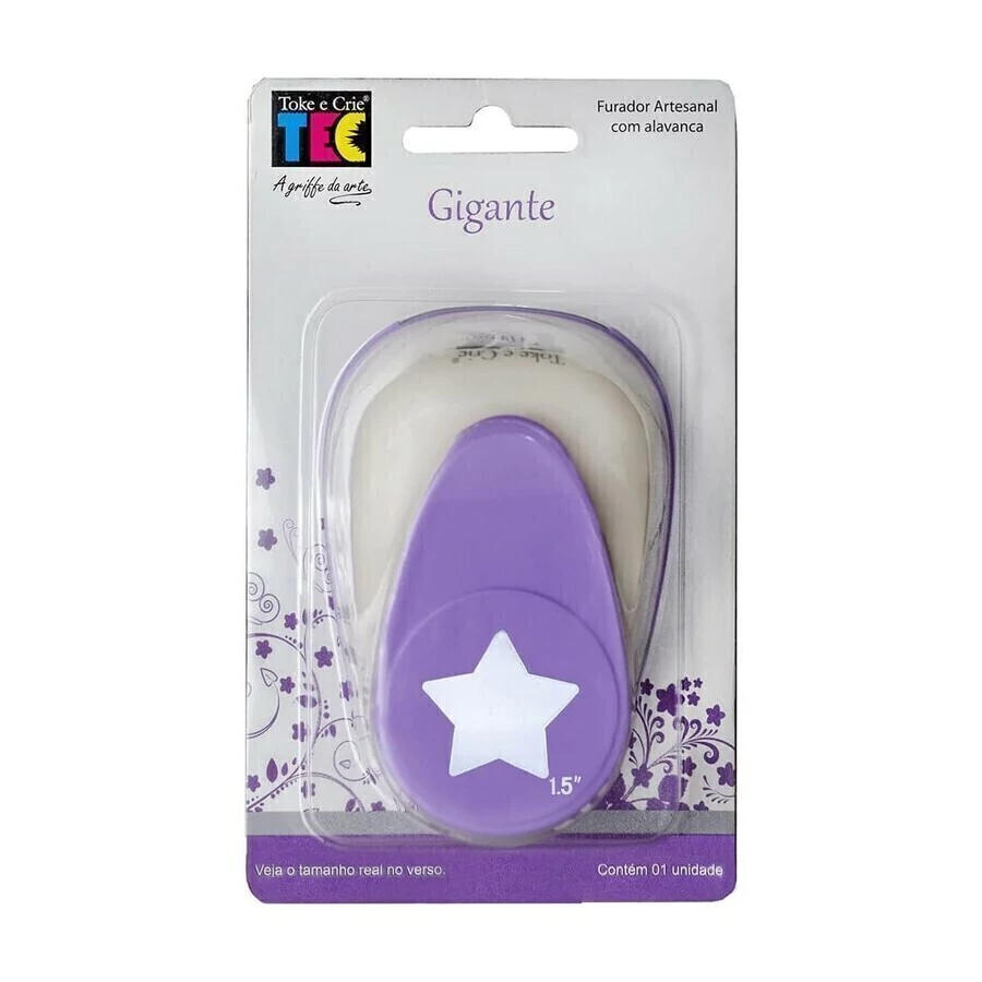Furador Artesanal com Alavanca Gigante, na cor branco e lilás da Toke e Crie.
